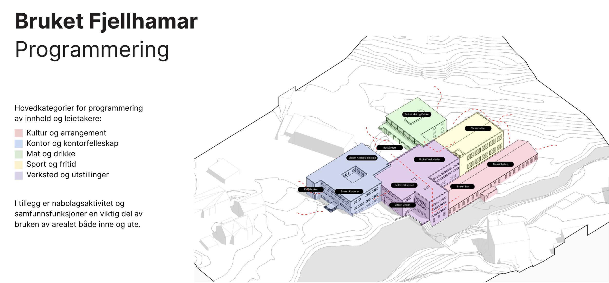 Kulturopplevelser er definert som blant det viktigste publikumsorienterte tilbudet på Fjellhamar. I tillegg vil området ha kontorer, verksteder, serveringtilbud og andre møteplasser.